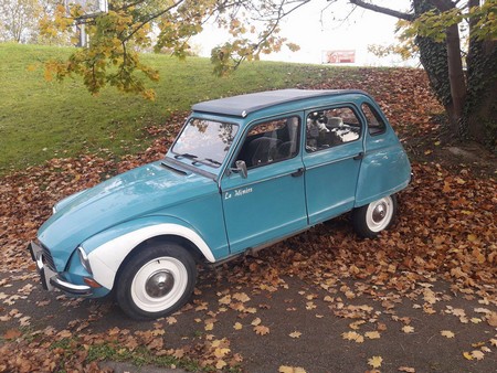 Peinture "Dyane bleue Citroën au bord
